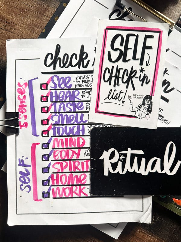 keep track of movement onApple watchmove body daily- break a sweatbreath workwork inCurrently workbookcheck-in with calendarart timefloss dailyhoroscopepick up RXconnect with my spiritwork in myhobonichi cousinoutdoor time/hike?pull cards/journal/videowatch how much time I spend on the phonetweeze thingspaint nailsdo a hair treatment